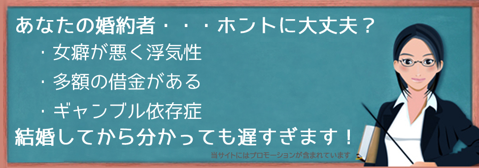 調査の素人であるアナタが調べても尻尾は出さないでしょうし、調査を察知されると水面下に潜ってしまいます。そうなるとプロの興信所や探偵社が調べようとしても、なかなか結果が出ないものです。結婚の話が出たらすぐに第三者の調査機関に事実を証明してもらうのが一番なんです。